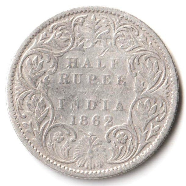 Rare Half Rupee 1862 of Queen Victoria Collectible British India Silver Coin