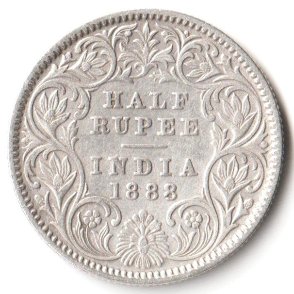 Rare Half Rupee 1888 of Calcutta Mint of Victoria Empress Collectible British India Silver Coin