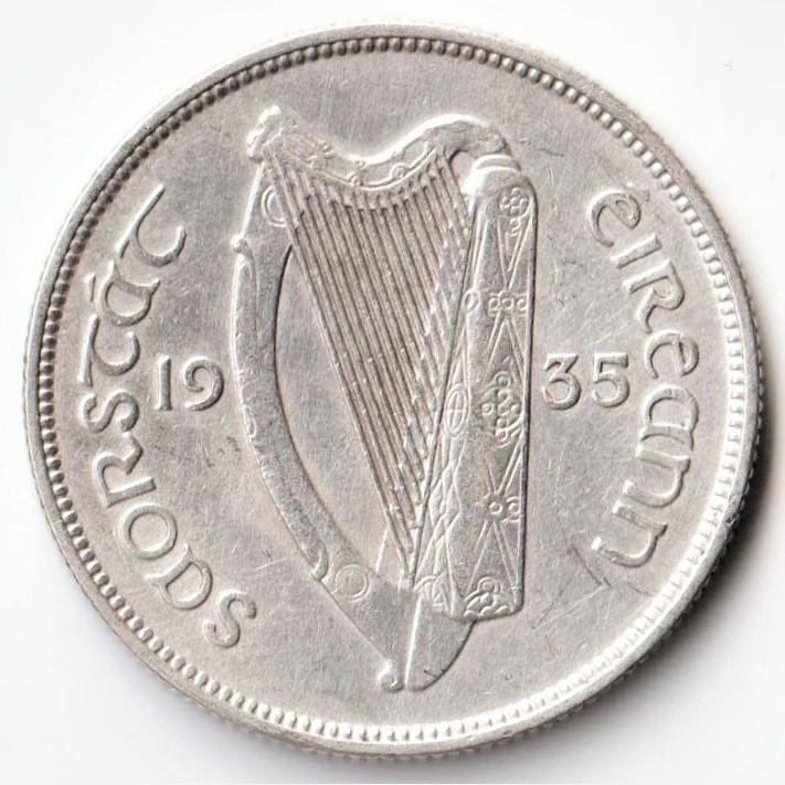 Ireland Florin / 2 Shillings 1935 of Irish Free State Silver Coin of Royal Mint London